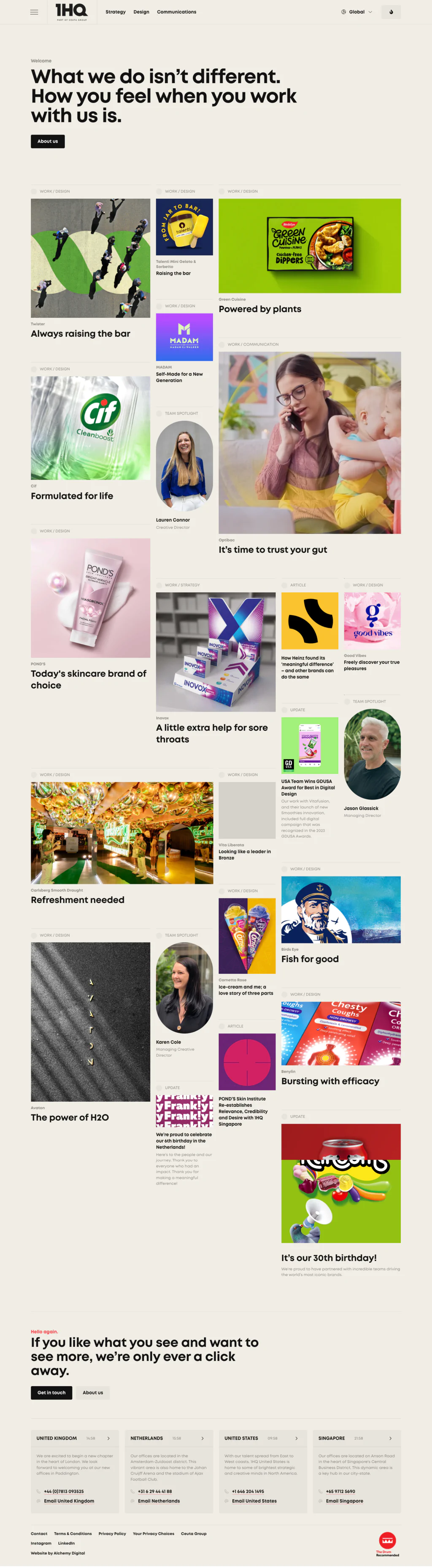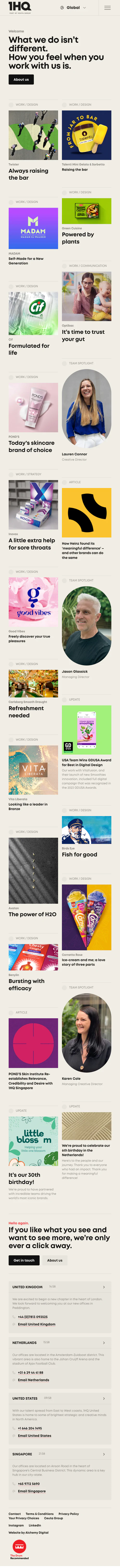 The 1HQ website boasts a sleek, modern design with an intuitive layout that effectively showcases their global presence and diverse portfolio. The homepage features dynamic visuals and concise information, providing visitors with a clear understanding of the agency’s capabilities and recent projects. Overall, the website’s design aligns with 1HQ’s commitment to innovation and excellence in brand development.
