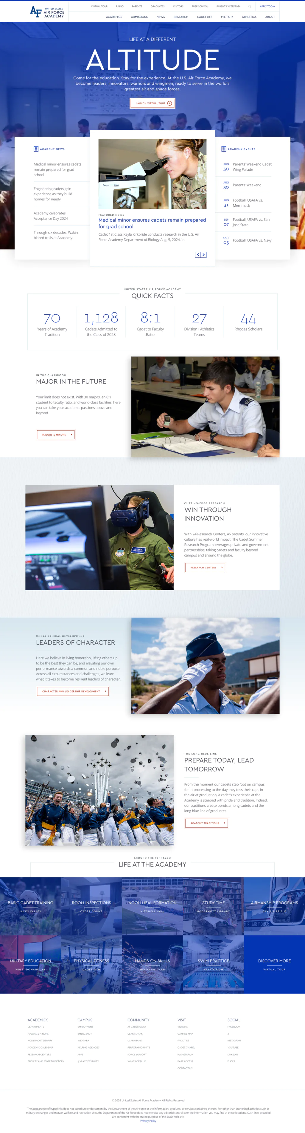 The website’s design reflects a clean, modern aesthetic with a strong emphasis on tradition and professionalism. The layout is intuitive, making it easy to navigate through the extensive information provided about cadet life, academics, and the academy’s storied history. The use of high-quality images and organized sections enhances the user experience, effectively conveying the academy’s mission and values.
