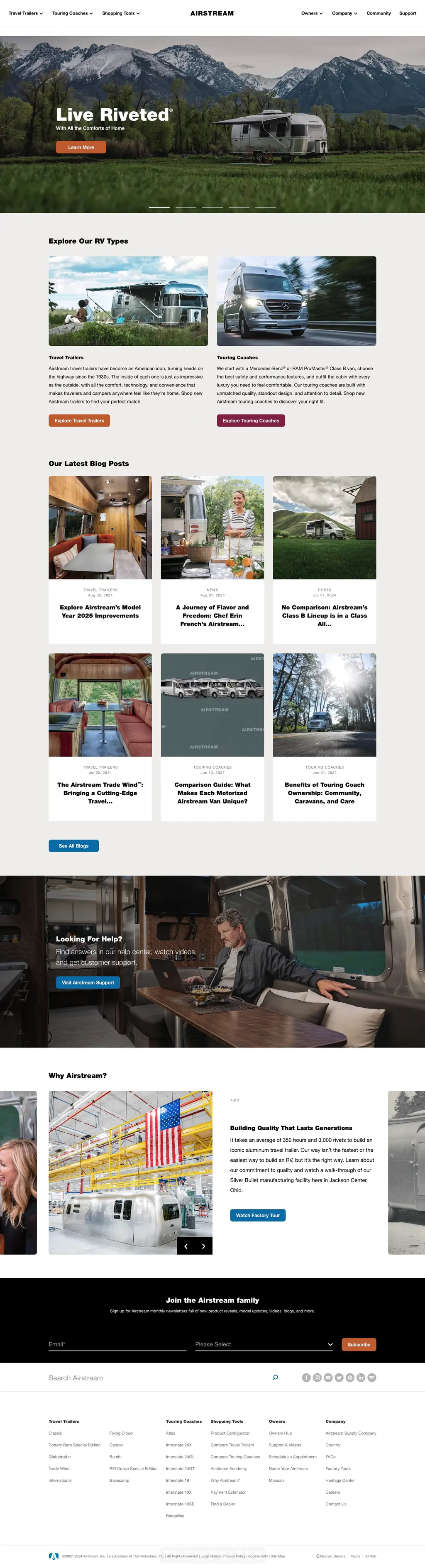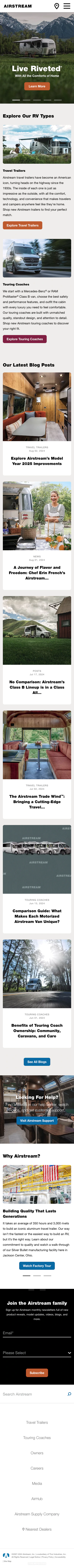 In terms of offerings, Airstream provides detailed information on various travel trailers and touring coaches, each tailored to different needs and preferences. They also offer tools for potential buyers, including model configurators, comparison guides, and financing options, making it easy to find and customize the perfect RV.