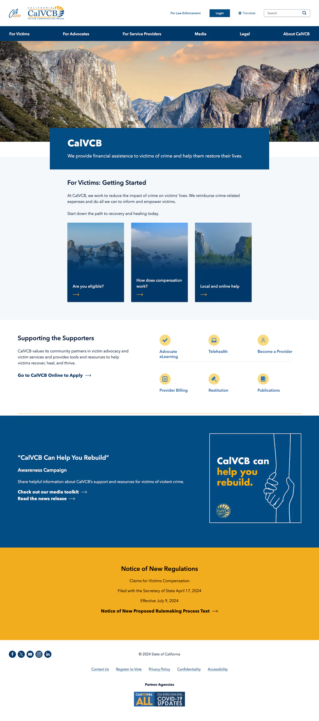 CalVCB assists eligible individuals by guiding them through the compensation process, offering mental health support, and connecting them with local and state services. Their programs extend help to those affected by mass violence, human trafficking, and more.