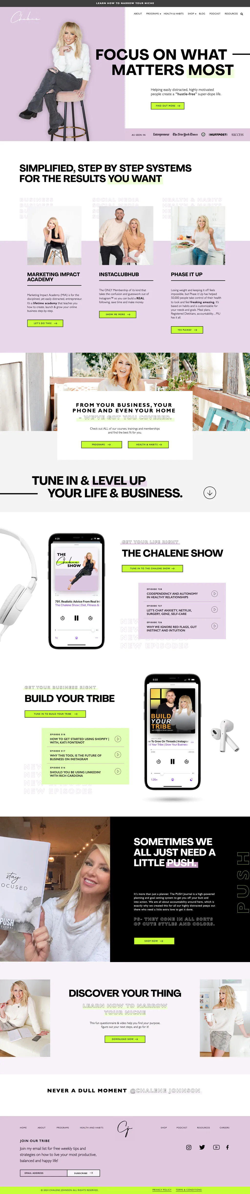 Visually, the website is clean and modern, with a vibrant color scheme that reflects Chalene’s energetic brand. It’s easy to navigate, with clear calls to action that guide visitors toward various resources. The design is user-friendly and appealing, making it an engaging platform for those looking to enhance different aspects of their lives.