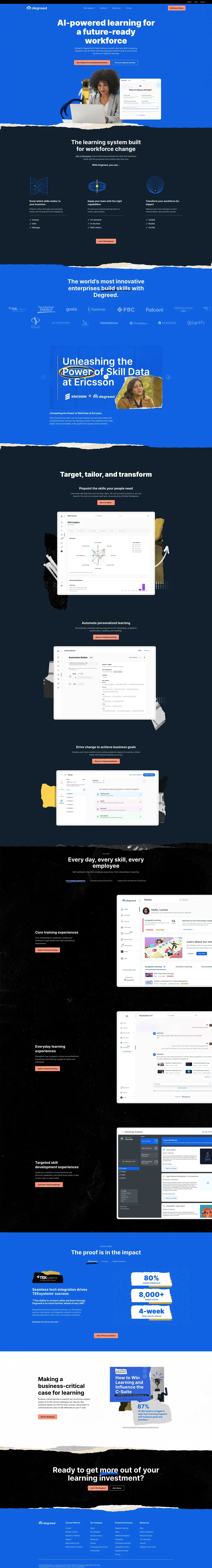 The platform provides a comprehensive suite of tools aimed at enhancing employee development. These include personalized learning experiences, skill analytics, and AI-driven content recommendations. Degreed integrates with various content providers and learning management systems, enabling organizations to curate and deliver diverse learning resources. Additionally, it offers solutions tailored to specific needs such as onboarding, upskilling, reskilling, and fostering a culture of continuous learning.