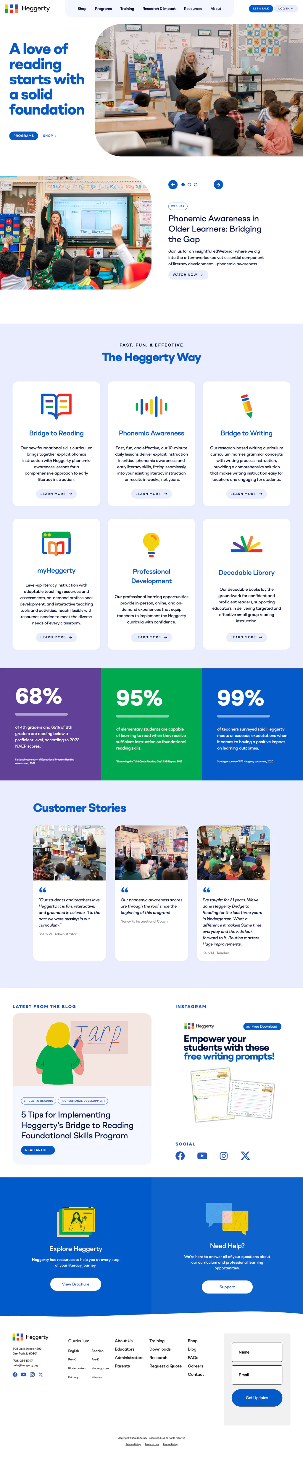 Heggerty.org is bright and engaging, reflecting its focus on early education. The layout is intuitive, with easy navigation to the different resources available. The use of colorful, child-friendly visuals helps to make the site approachable and inviting, while the clear organization of content ensures that educators and parents can quickly find what they need.