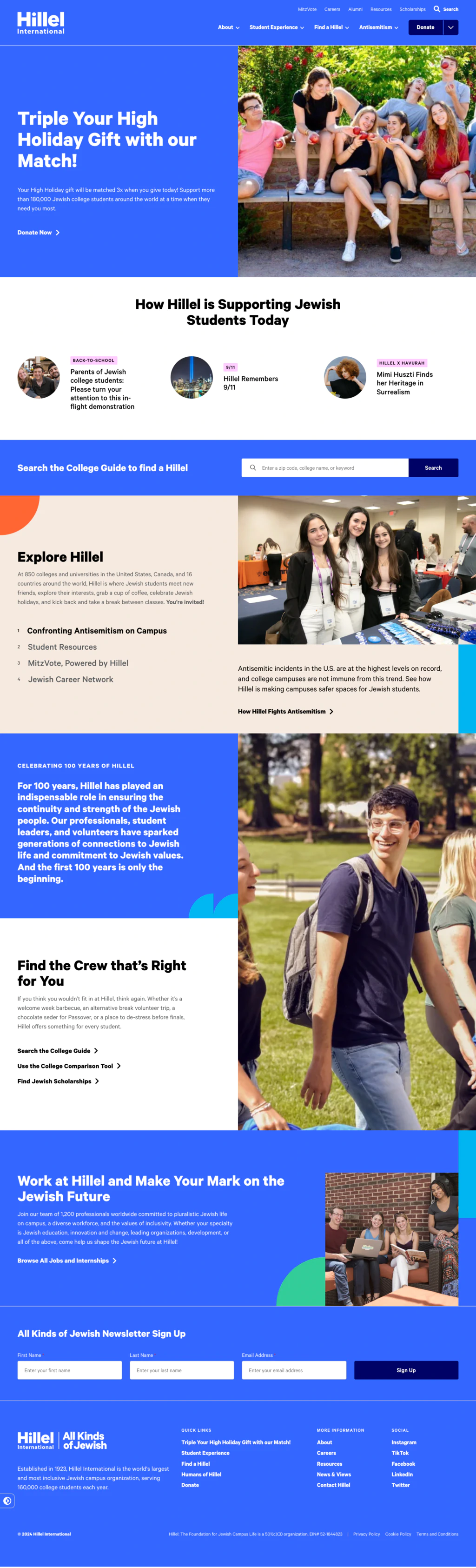 The website highlights Hillel’s diverse offerings, including campus programs, educational resources, and community-building activities. From organizing events and providing leadership opportunities to offering support for Jewish holidays and traditions, Hillel is dedicated to creating a welcoming environment where students can connect with their heritage and each other. They also provide a variety of tools and resources to help students deepen their Jewish identity and involvement.