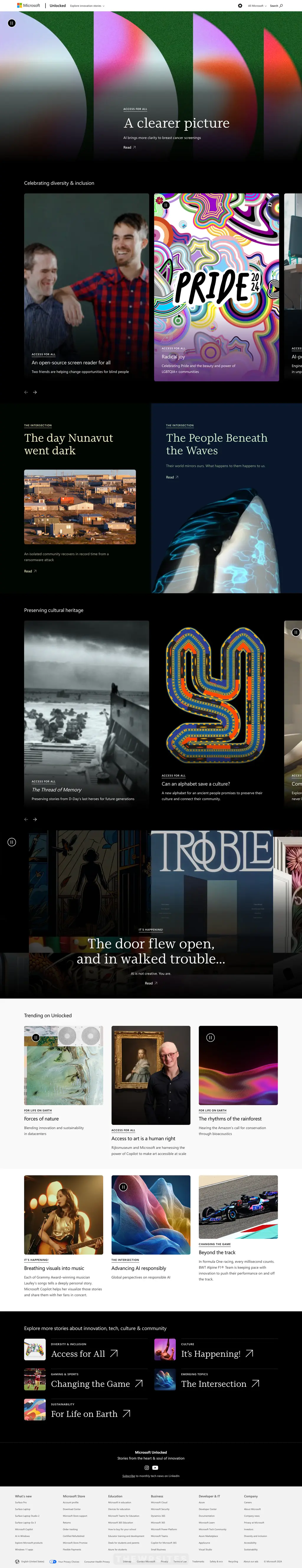 The site is sleek and user-friendly, with a clean layout that makes it easy to explore different stories. The visual design is modern, using high-quality imagery and a consistent color scheme that aligns well with Microsoft’s branding, giving the site a professional yet approachable feel.