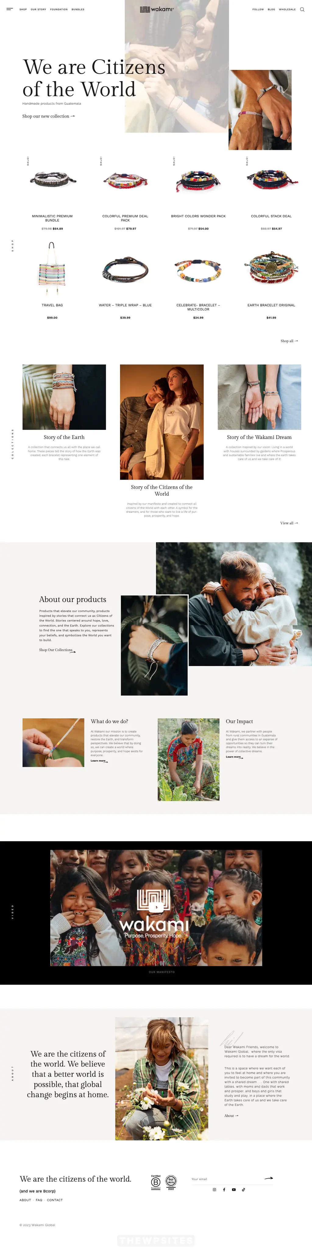 The website’s design is warm and inviting, mirroring Wakami’s mission of community and global connection. The site is easy to navigate, with visually appealing imagery and a cohesive color palette that highlights the brand’s handmade, earth-friendly ethos. It effectively conveys Wakami’s values while making it simple for visitors to explore their products and learn about the impact of their purchases.
